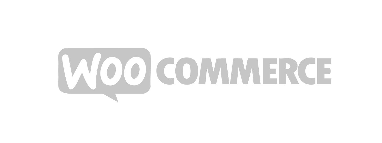 WooCommerce logo in gray with the word 'WooCommerce' inside a speech bubble.