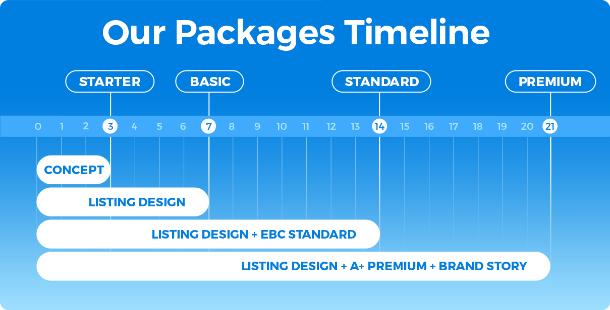 We start once we receive all your product info and direction. Quick feedback helps us stay on schedule.