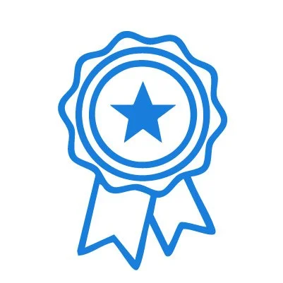 Blue award ribbon with a star in the center and two ribbon ends at the bottom.