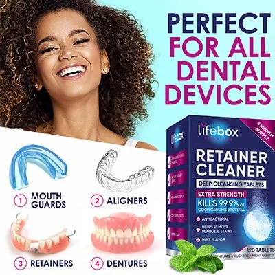 ★ Infographics highlighting cleaning power, ingredients, and compatibility (Invisalign, retainers, night guards, etc.)